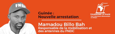 Alors que Tournons La Page s’apprête à débuter son Assemblée générale à Cotonou au Bénin, la junte guinéenne continue sa répression avec l’arrestation de Mamadou Billo Bah. Ce dernier a été enlevé par des hommes cagoulés et lourdement armés alors qu’il sortait d’une réunion avec des citoyens dans le quartier Tombolia à Conakry. Il est depuis détenu au secret sans accès a ses avocats ni à sa famille.
